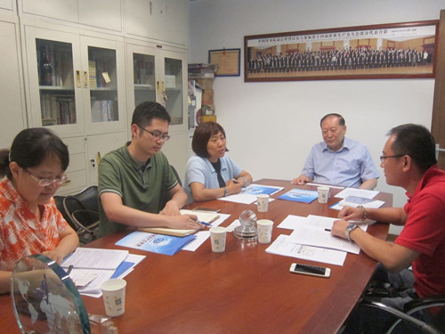 图/李爱仙副院长、刘春卉博士与陈胜昌副会长、张兵秘书长会议室研讨交流
