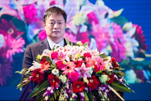 中共周至县委书记杨向喜讲话,并同县人大常委会主任何凡盟、县人民政府县长陈旭辉、县政协主席蒋选亮代表全县父老乡亲向出席全球周商大会嘉宾拜年