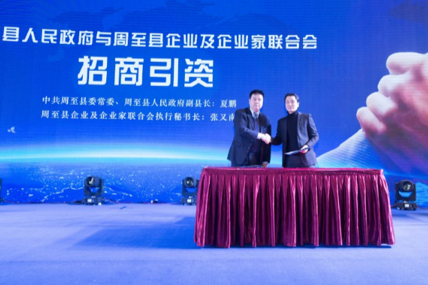 周至县人民政府副县长夏鹏与周至企业及企业家联合会副会长兼秘书长张又南签订《招商引资合作协议》